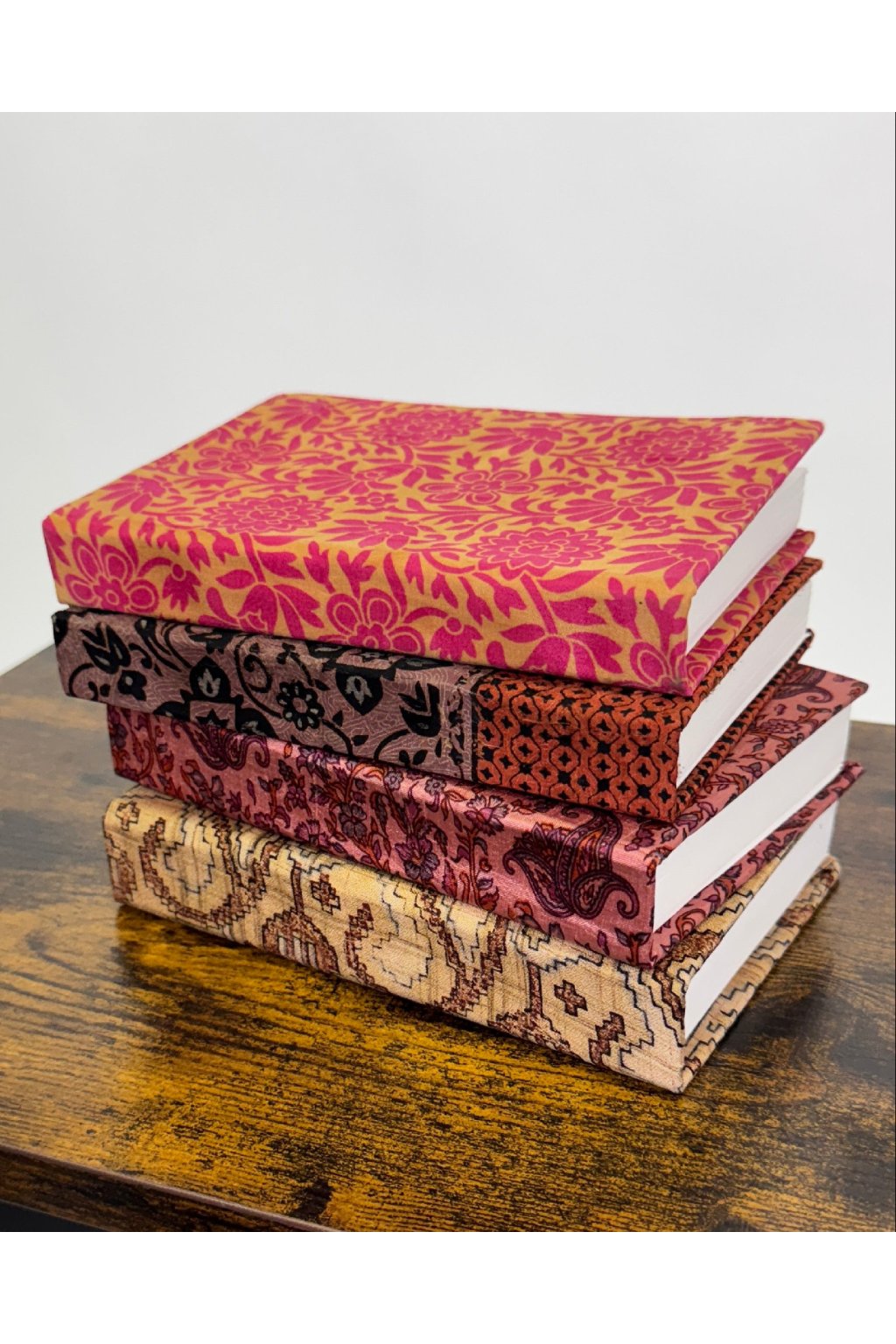 Unikátní deník potažený látkou z recyklovaných hedvábných sárí. Každý kus vzniká z hedvábných látek, které osobně vybírám pro výrobu oděvů a doplňků. Tyto látky tak dostávají nový život.