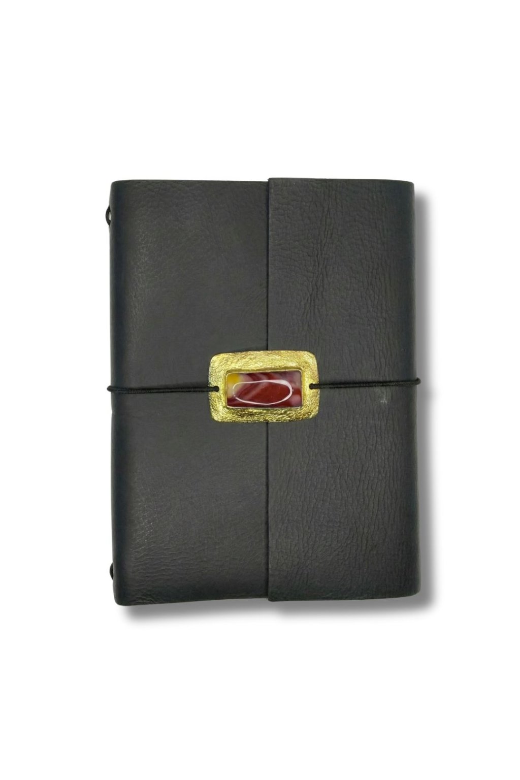 Unikátní kožený deník s výměnnými bloky a ručně vyrobenou sponou s pravým kamenem. Každý zápisník je ručně vyráběný originál.