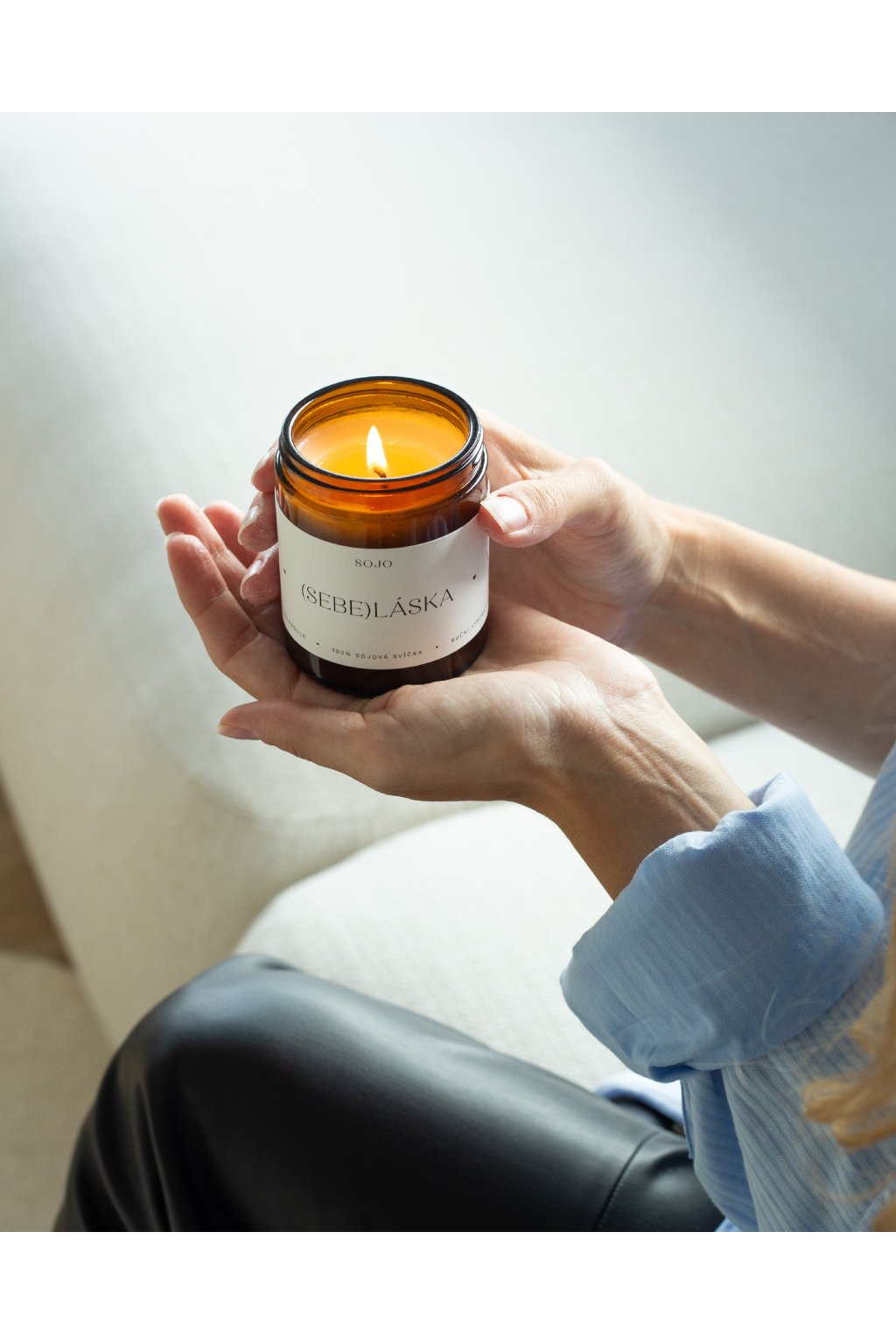 Ručně odlitá 100% sojová svíčka s bavlněným knotem a 100% esenciálními oleji.