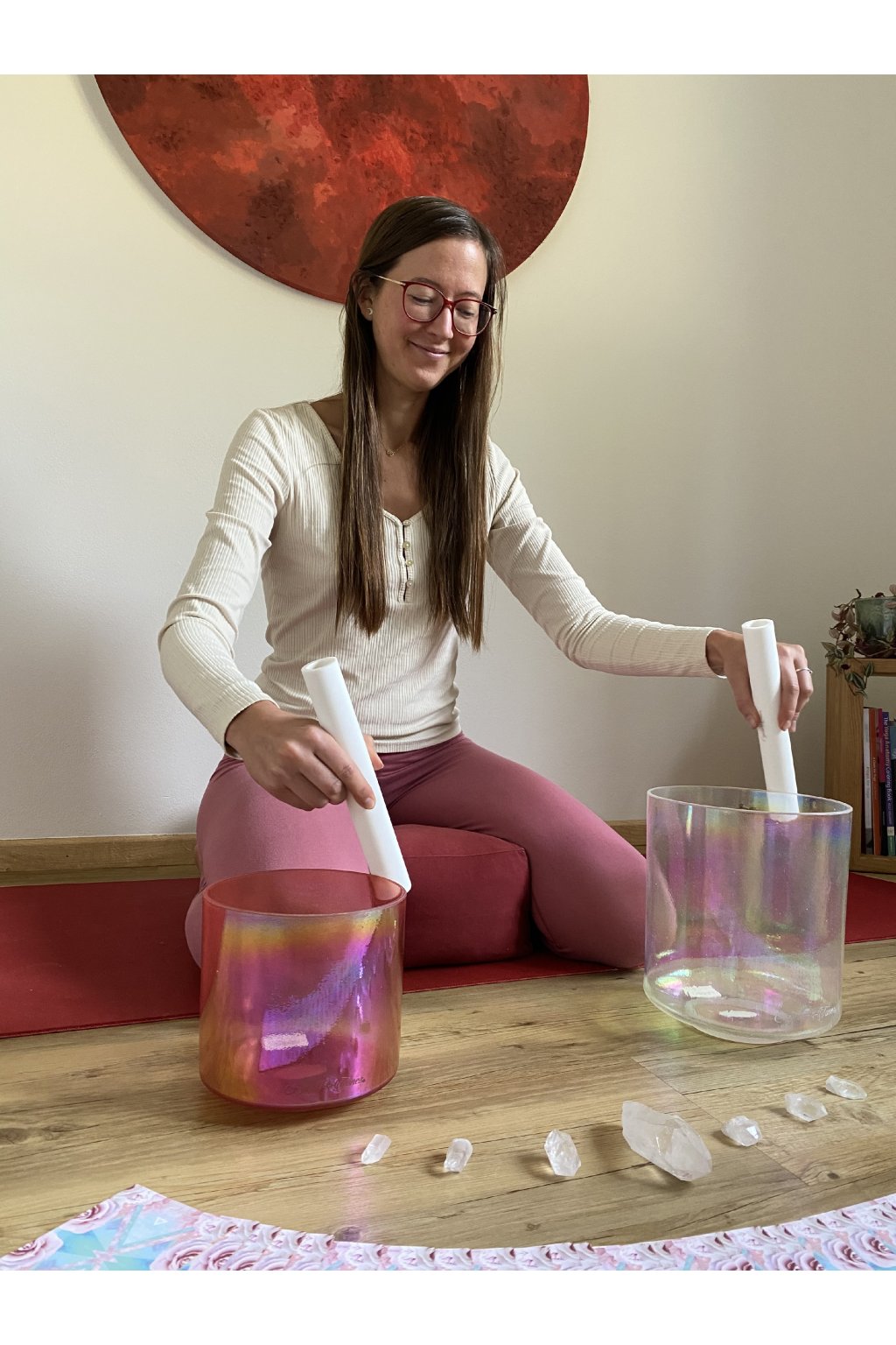 Když jsem objevila křišťálové mísy, okamžitě mě okouzlily a cítila jsem, že se stanou součástí mé cesty. Díky své učitelce Jaroisin Doyle jsem poznala alchymické mísy od Crystal Tones a byla to láska na první pohled. Jejich úžasné terapeutické účinky na tělo i mysl mě nepřestávají fascinovat. Mísy jsou pro mě velkou oporou ve chvílích, kdy je toho na mě už prostě moc. Vrací mě do klidu, rovnováhy a radosti. A já s vděčností a láskou šířím jejich vibrace dál. :)